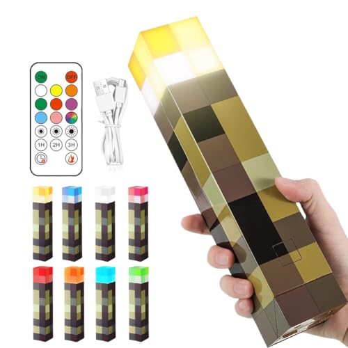 Lampa fackla vägglampa Craft, 28 cm nattlampa uppladdningsbar, 8 färger Hand/Väggfäste Belysning med krok & Fjärrkontroll, 3D-torch-lampa med USB-laddning för barnpresenter, cosplay, festdekoration