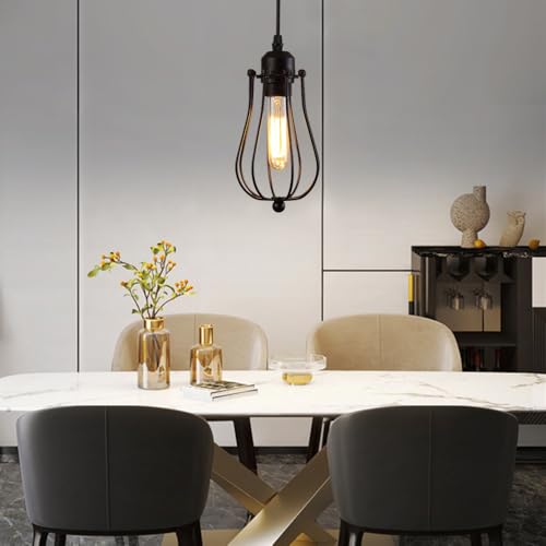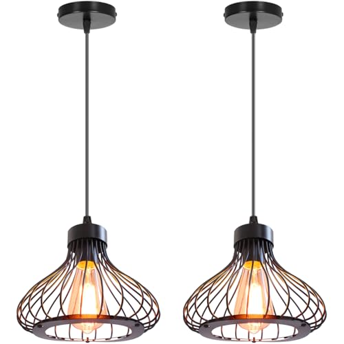 iDEGU 2 stycken hängande lampor industriell pendellampa 23 cm lampskärm av metall i bur design svart vintage lampa för kök matsal sovrum vardagsrum hall bar restaurang (svart)
