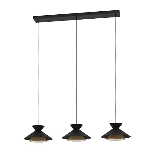 EGLO Grizedale lampa pendel, japansk design 3 lampor ljuskrona, hängande pladonlampa för vardagsrum och matsal, metall svart och mässing, uttag E27, Ø 50 cm