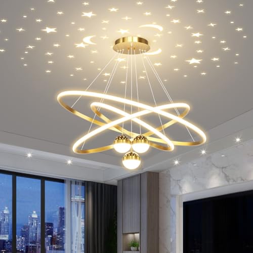 LED taklampa Creative Gold Ringshape Design Vardagsrum taklampa Dimbar med fjärrkontroll Sovrum lampa för Study Room, Vardagsrum, Sovrum, Matrumsbelysning (5 ringar)