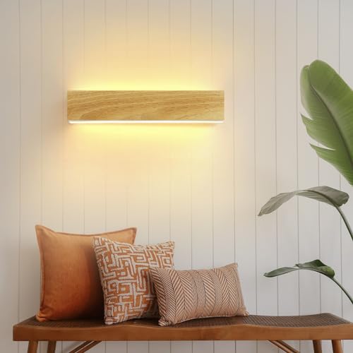 ZMH LED Vägglampa Inomhus Vägglampa - 32CM Trä Modern Hall Lampa Upp och Ned 10W Design Trapplampa Indirekt 3000K Varmvit Väggbelysning för Vardagsrum Sovrum Hall Trappa Säng Kök