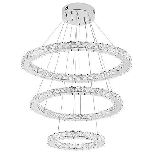 Aufun 96W modern kristall LED 3 ring design, kristalltaklampa, kreativ ljuskrona, hängande lampa för sovrum vardagsrum matsal (imbar, 72 W)
