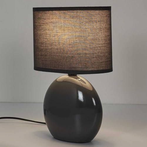 HOME DECO FACTORY, LA0057, Modern oval keramisk lampa, elegant och raffinerad design, perfekt för vardagsrum eller kontor, sprider ett varmt ljus, höjd 30 cm, antracitgrå färg