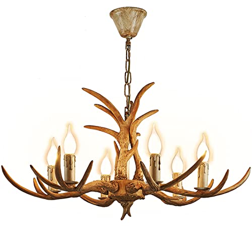 WSIKGHU ljuskrona med 6 socklar, harts, horn-design, ljuskrona, horn, lampa ,vind, bar, taklampa, E14 × 6, retro, tak, pendellampa, LED-pendellampa, lämplig för dekoration av vardagsrum, bar, matsal