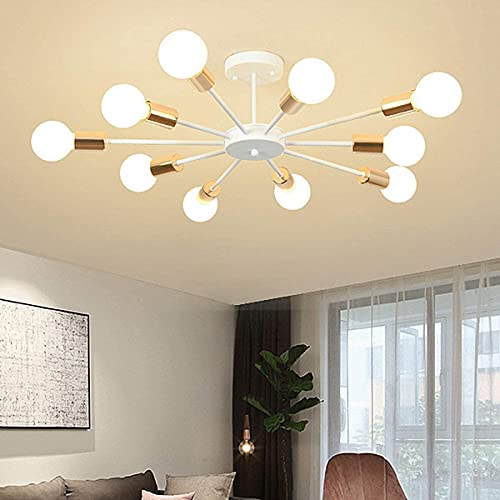JIINOO infälld taklampa, vita moderna ljuskronor, 10 lampor E27 industriell bas semi-tak taklampor armatur för sovrum Vardagsrum Kök Farm Art Exhibition