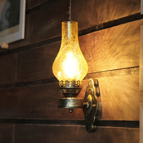 SENDERPICK Vintage vägglampa, retro antik vintage rustik glasvägg lampett industriell stil vägglampa glas skugga belysning armatur utomhus (gul brons)