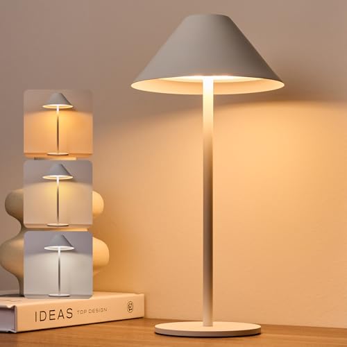Bojim LED bordslampa, 3 färger lampett trådlös IP54 vattentät för utomhusbruk, touch switch vit LED skrivbordslampa med uppladdningsbart batteri för sovrum bar restaurang bord deco camping