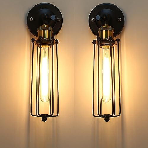 Två paket industriell vintage vägglampa rörlampor rustik justerbar vinkeltråd metallbur vägglampa lampetter retro inomhusbelysning armatur passar för hall korridor sängbord