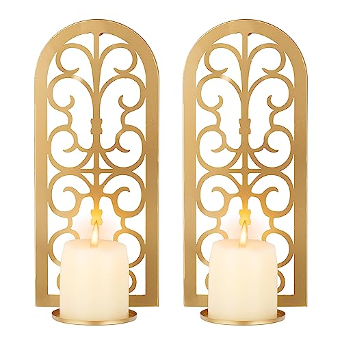 Sziqiqi Metallljuslampetter Väggljusstakar Set Med 2, Vintage Väggmonterade Lampetter för Värmeljus Pelare Ljus Väggkonstdekor för Vardagsrum Matsal Sovrum Öppen Spis Badrum