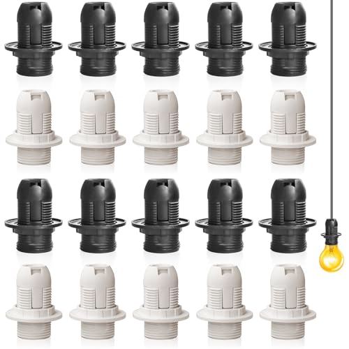 20 stycken vintage solid lamphållare E14, bakelit-fattning, glödlampahållare, Edison retro skruvadapter för lampor (10 svart + 10 vit)