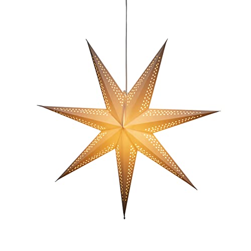 Konstsmide Beige pappersstjärna, 7 taggar, inklusive anslutningskabel med på/av-strömbrytare, utan lampa, E14 lamphållare, 230 V, inomhus, vit kabel – 2917–370FSC