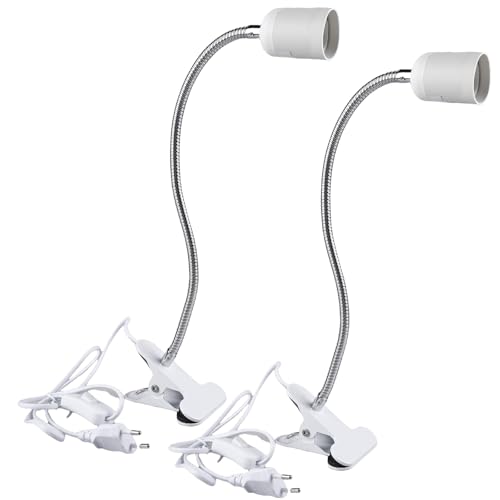 2 stycken E27 klämlampor, lamphållare, justerbar 360° svanhals, E27, lång kabel med strömbrytare och kontakt, lamphållare för växande växter, bord (utan glödlampa)