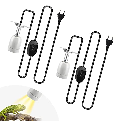 CPROSP 2 st värmeljusfattning, keramisk för reptiler, varm lamphållare med strömbrytare, 1,8 m kabel och kontakt, ödla sköldpadda UV, porslinsockel 360° roterbar, dimbar, ingen glödlampa