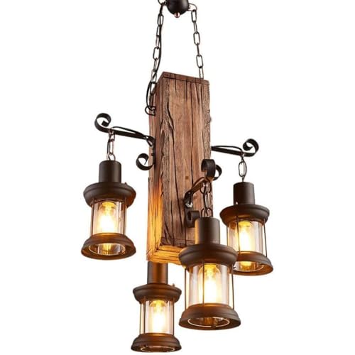 AHQX Hänglampa vintage ljuskrona retro hängande lampa trä metall hängande lampa svart justerbar höjd glödlampa E27 industriell taklampa för matsal vardagsrum kök café pendellampa ..