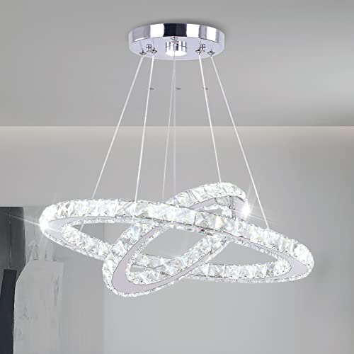 Finktonglan Modern taklampa i kristall med LED-lampor, justerbar ljuskrona, 30 x 50 cm, rostfritt stål, hängande lampor för matsal och vardagsrum (kall vit)