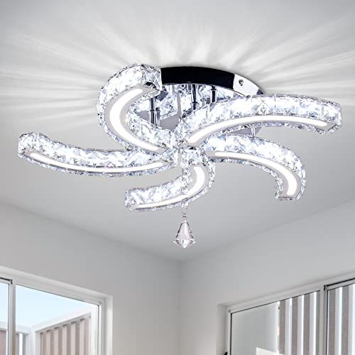 Bestier modern halvlång ljuskrona av krom och kristall, belysning, LED-taklampa, för matsal, badrum, sovrum eller vardagsrum