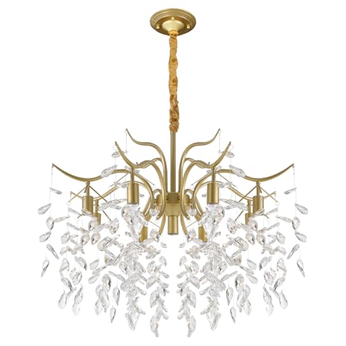 KAPIPALA Modern kristallkrona, gren, pendellampa, kristall, taklampa, 8 lampor, taklampa, golden, för matsal, vardagsrum, hall, kök, sovrum, [energiklass A++till E]