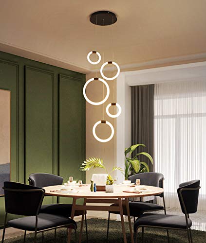 AHQX LED pendellampa aluminium hängande lampa modern enkelhet ring takbelysning brun höjdjusterbar taklampor vardagsrum matsal ljuskrona arbetsrum upphängning, 6 ring/dimning/88 W