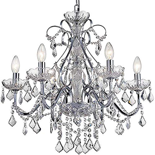 Bestier modern krom hängande ljuskrona kristallbelysning taklampa fixtur lampa för matsal badrum sovrum vardagsrum 6 E14 glödlampor krävs D 60 cm x H 65 cm