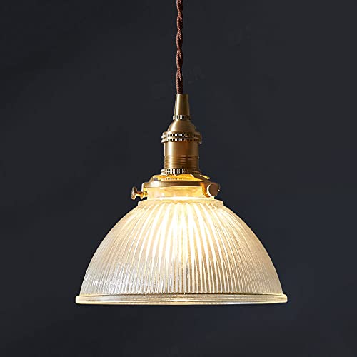 Jadssox räfflade glas taklampa retro Farmhouse tak Hänglampa, mässing Kitchen Island belysningsarmaturer, rustika hängande lampor för matsal Sovrum Vardagsrum