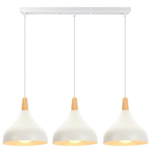 ouglres pendellampa vintage 3 lampor hängande lampa retro lampskärm industriell matbord E27 trä hängande lampa för kök matsal vardagsrum restaurang sovrum barer kaféer, vit