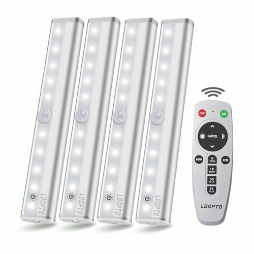 LED underskåp lampor för kök 2-pack LDOPTO dimbar skåp garderob lampor med trådlös fjärrkontroll inbyggd magnet fästremsa batteridriven varmt vitt ljus
