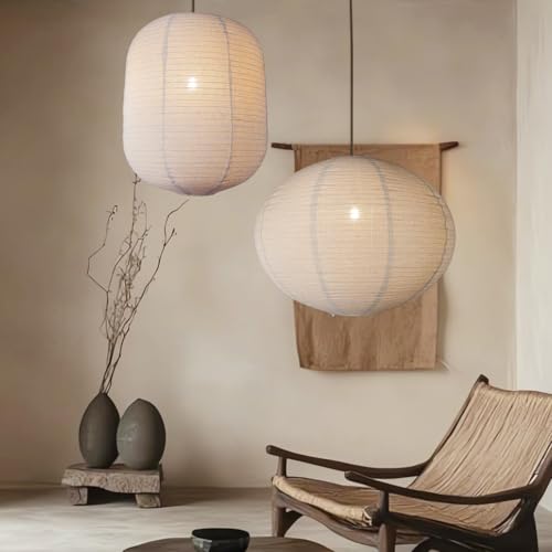 Methedeeco 2 st cylindrisk oval hängande lampskärm, 50 cm beige tygskugga, lykta för vardagsrum, matsal, sovrum, hotelldekoration, display och presentidéer