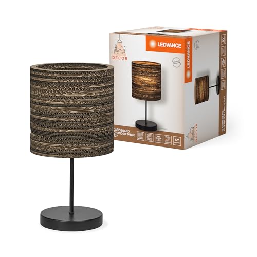 LEDVANCE Decor Cardboard Cylinder bordslampa brun av wellpapp, E27, 200 mm diameter, lampskärm av återvunnet material, hållbar tack vare utbytbar ljuskälla, enkel installation