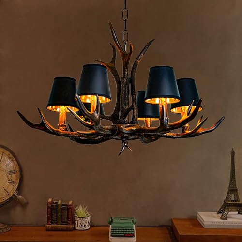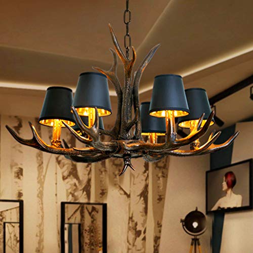 JOJOM Traditionell ljuskrona i lantlig stil 6 lampor E14 hängande hornlampa ljuskrona i industriell stil harts svart järn lampskärm taklampa höjdjusterbar taklampa matsal café