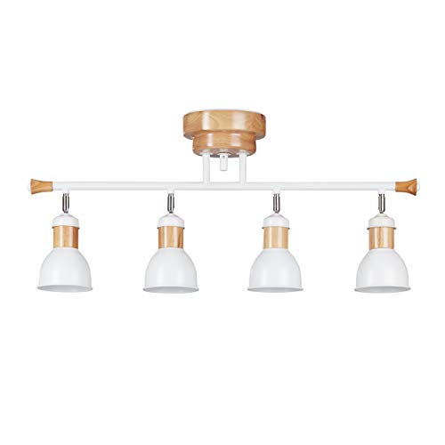 Relaxdays vit/natur taklampa 4 fläckar, svängbara lampskärmar, 4-flammiga, E14, järn, trä, HBT: 39 x 85 x 18 cm, standard