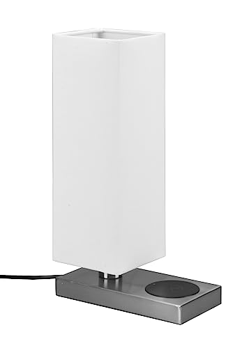 Reality Leuchten bord Haley R59100107, metall nickel matt, lampskärm tyg vit, exkl. 1 x E14, induktivt laddningfält