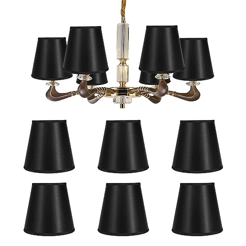 6 st E14 tyg lampskärmar 5,9 * 3,5 * 4,9 tum Clip-On hög ljustransmittans ljusbord Kristallkrona lampskärm för E14 lampor lampor (svart och guld)