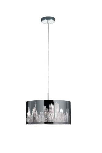 Trio Leuchten 308400206 hänglampa krom med lampskärm i rostfritt stål med laserskuret metropolmotiv tar 2 x E14 max 40 W glödlampor (ingår ej) diameter 40 cm höjd 130 cm