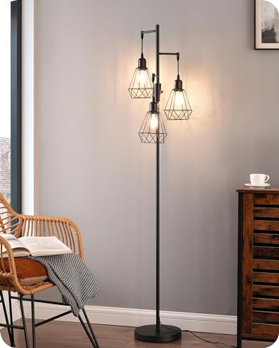 EDISHINE Golvlampa för vardagsrum, dimbar golvlampa, 3 000K varmvit, 400 lm, 3 E27 LED-lampor ingår, vintage industriell lampa med lampskärm för sovrum, vardagsrum, kontor, 166 cm [Energiklass E]
