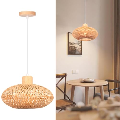 DLGLOLIN Vintage hängande lampa inomhus ljuskrona naturlig bambu lampskärm E27 hängande lampor dekor trä takbelysning för vardagsrum sovrum kök