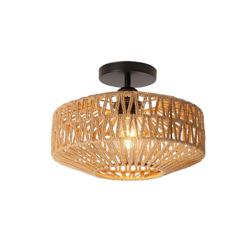 Vintage Taklampa,Boho Taklampa Pendellampe,Rattan Lampskärm,Hängande Lampa för Vardagsrum,Sängkammare,Kök,Restaurang,Bondgård,EntréHall,Passway,E27 Lamphållare,Brun och Svart,Diameter 30CM,Rustik