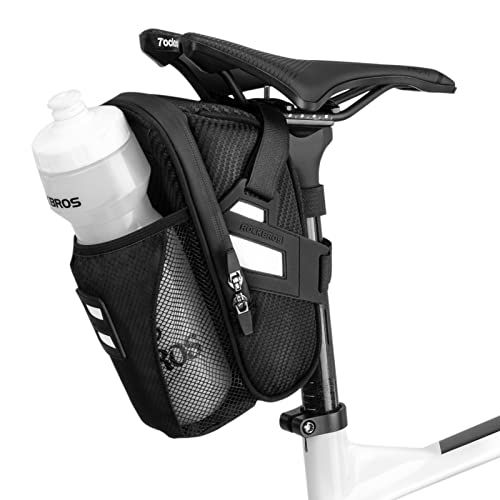 ROCKBROS Vattenavvisande cykelsadelväska, cykelväska för MTB, med vattenflaskhållare, reflekterande ränder, hängande lampskärm, stor kapacitet 1 L, cykeltillbehör