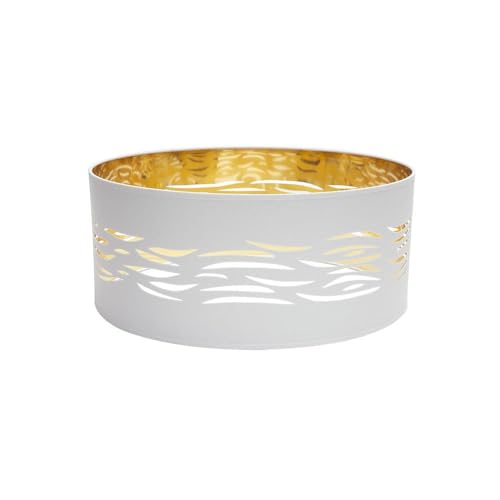 Hängande lampskärm med 50 cm diameter och 20 cm höjd i vitt och guld, perfekt för dekorativ belysning och eleganta miljöer.
