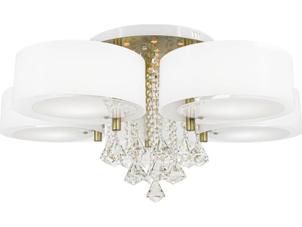 Mdeco Glamour Taklampa Drs8006/521Qg Mdeco Lampskärm Plafond Med Kedjor Vit Mässing