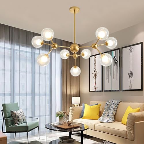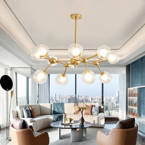 Pendelbelysning Modern Sputnik ljuskrona Borstad mässing guld Hänglampa Industriell infälld taklampa Justerbar lampskärm i glas Hänglampa för vardagsrummets bar (Color : Gold, Size : 12 goals.)