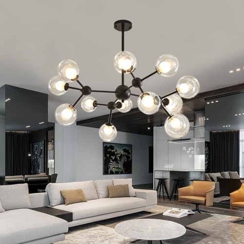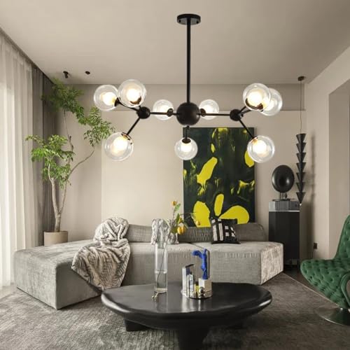 Pendelbelysning Modern Sputnik ljuskrona Borstad mässing guld Hänglampa Industriell infälld taklampa Justerbar lampskärm i glas Hänglampa för vardagsrummets bar (Color : Black, Size : 12 goals.)