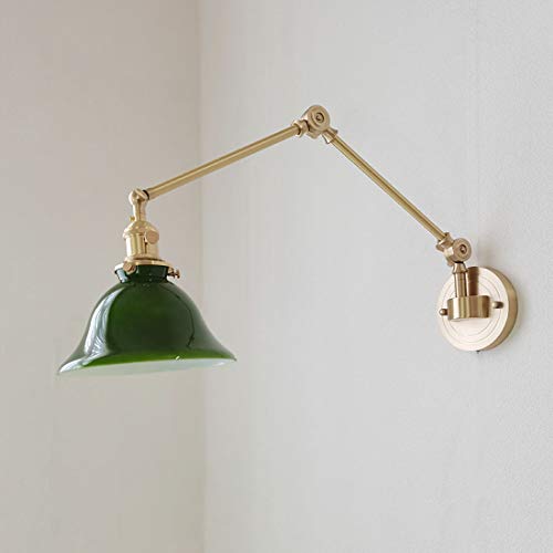 LMAMZ VäGglampa Med LåNg Arm MäSsing Med Justerbar StråLvinkel, Industriell GlasväGglampa Med 18 Cm Rund LampskäRm, Retro Design, Utdragbar MaxläNgd 70cm,Green