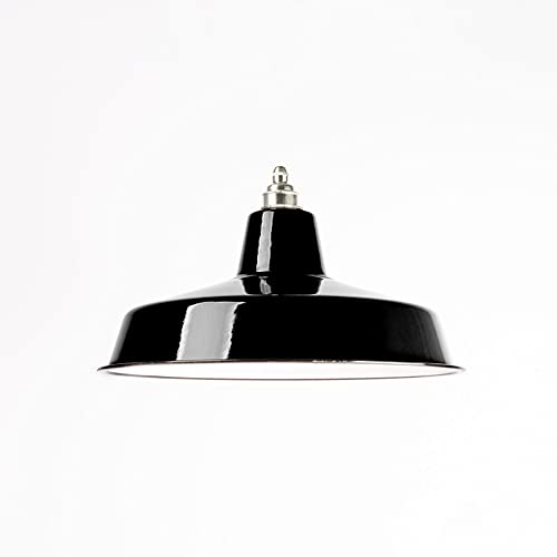 Industriell lampskärm emalj svart (2. Val), fabriklampa Ø 36 cm inkl. vintagesockel av mässing, nickelfinish