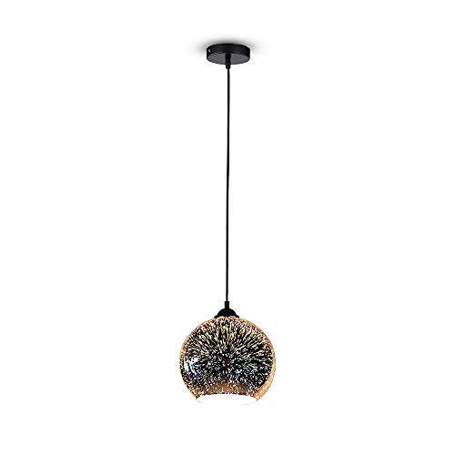 V-TAC VT-7206 LED hängande ljushållare med 3D-glas lampskärm och Matt svart metall canopy D: 200mm, E27