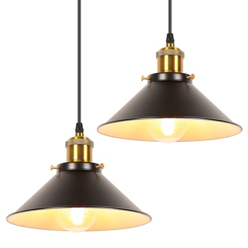 iDEGU Retro pendellampa, 22 cm vintage hängande lampa E27, industriell lampskärm av metall, taklampa, hängande lampa för matsal, vardagsrum, kök, sovrum, restaurang (2 stycken, svart)