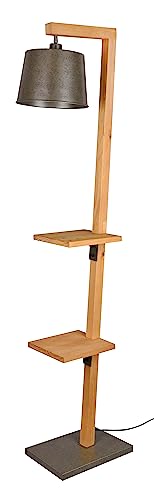 Trio Leuchten Golvlampa Rodrigo 402690167, lampskärm metall nickel antik/guld, trä, exkl. 1 x E27
