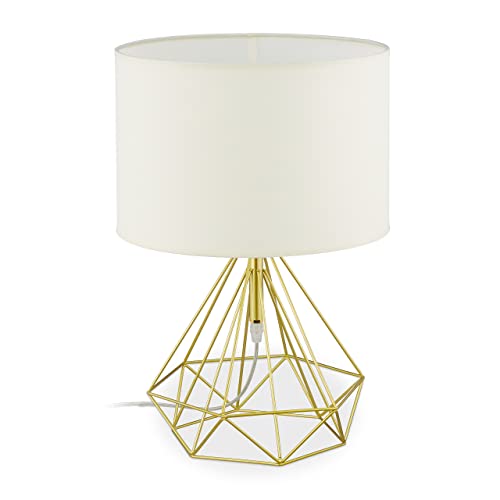 Relaxdays Sänglampa, trådlampa med tyg lampskärm, E27, vintage bordslampa, metall, H x D 44 x 30,5 cm, vit/guld, 10034191
