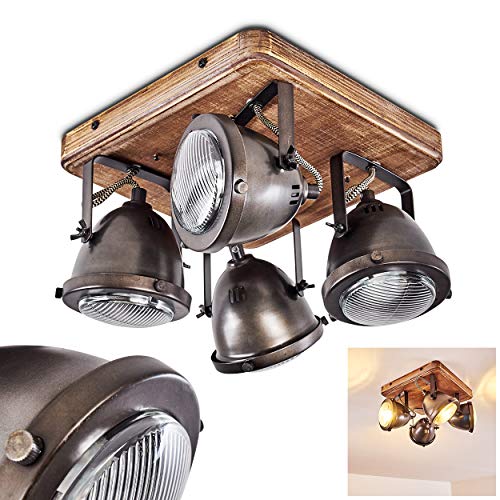 Taklampa Glostrup, dimbar taklampa av metall/trä i brunt, 4 lampor, lampskärm roterbar och svängbar, 4 x GU10-fäste, spot i retrodesign, utan glödlampor