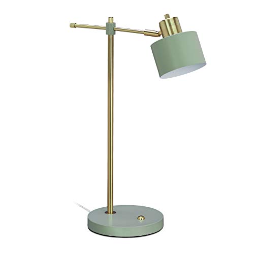 Relaxdays Skrivbordslampa metall, svängbar lampskärm, bordslampa skrivbord, E27, bordslampa, guld/grön 10034201