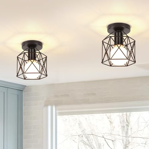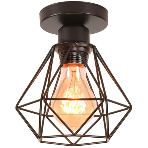 iDEGU Vintage taklampa ljusarmatur, geometrisk bur stil industriell taklampa metall lampskärm E27 ljuskrona för sovrum vardagsrum matsal, 16 cm (svart)
